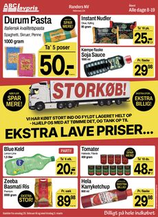 ABC Lavpris Randers i Tranekær centret er områdets førende lavprissupermarked. Butikken er indrettet med stort åbent indgangsparti, hvor du allerede ved indgangen mødes af frisk frugt og grønt. Derefter kommer du ind i et indgangsparti, fyldt med spændende tilbud og partier til knald gode priser. Herefter en kæmpe nedkølet Frugt- og Grøntafdeling, sprængfyldt med friske varer, store oplæg og lave priser. Inde i butikken finder du brede gange, et stort udvalg og altid rigeligt med varer på hylderne. I ABC Lavpris fører vi dagligvarer til lave priser og hver uge ekstra stærke tilbud, hvor den i forvejen lave pris får et ekstra spark nedad. ABC Lavpris har desuden et stort fokus på ferskvarer, der fylder en stor del af butikken. Her i blandt finder du frisk dansk kød fra Slagter Norlyk, friskbagt bagerbrød fra den lokale bager, og hver dag nye leveringer af frisk dansk mælk. Vinafdelingen er stor og velassorteret med lave priser og gode tilbud, hvor du altid kan finde vin som der passer til maden.
